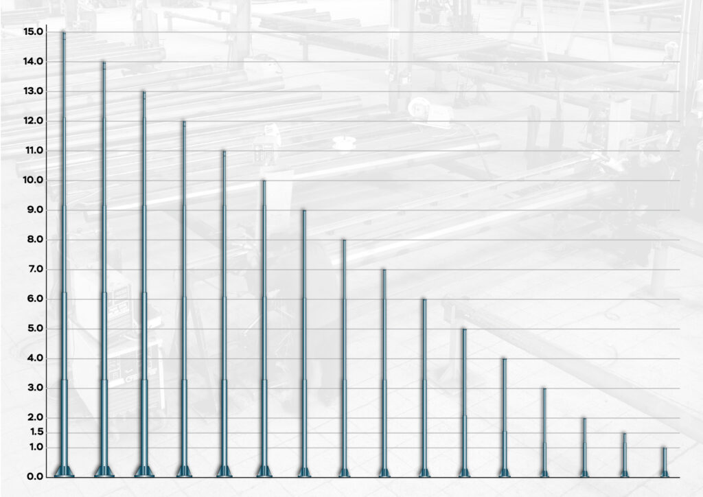 پایههای لولهای صنایع روشنایی آرم از لولههای فولادی استاندارد و بدون درز یا لولههای صنعتی گرید بالا تولید میشوند و در ارتفاعهای ۱ تا ۱۵ متر عرضه میگردند. این پایهها با توجه به نوع پروژه، سرعت باد منطقه و بارگذاری چراغ یا تجهیزات نصبشده، مطابق محاسبات استاتیکی طراحی شده.